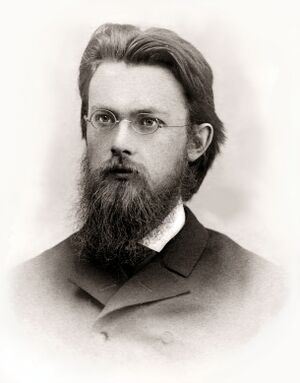 Vladimir Ivanovich Vernadsky, also spelt Volodymyr Ivanovych Vernadsky (روسية: Владимир Иванович Вернадский,[2] أوكرانية: Володимир Іванович Вернадський;[3][4] 12 March [ن.ق. 28 February] 1863 – 6 January 1945) was a Russian, Ukrainian,[5] and Soviet mineralogist and geochemist who is considered one of the founders of geochemistry, biogeochemistry, and radiogeology.[1] He was one of the founders and the first president of the Ukrainian Academy of Sciences[6][7] (now National Academy of Sciences of Ukraine).[8] Vladimir Vernadsky is most noted for his 1926 book The Biosphere in which he inadvertently worked to popularize Eduard Suess' 1875 term biosphere, by hypothesizing that life is the geological force that shapes the earth. In 1943 he was awarded the Stalin Prize. Vernadsky's portrait is depicted on the Ukrainian ₴1,000 hryvnia banknote.