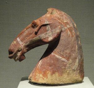 The horses have since captured the popular imagination of China, leading to horse carvings, breeding grounds in Gansu, and up to 430,000 such horses in the cavalry during even the Tang dynasty.[1]