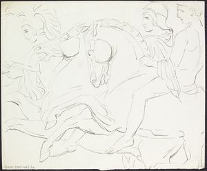 Etty generally finished life studies during three evenings sittings. On the first evening he would sketch the model in charcoal or chalk, and then ink in the outline. On the second he used oil paints to fill in the figures. On the third he layered glaze and the final coverings of paint.[108] He usually painted on millboard, re-using the reverse for fresh paintings.[109] His female models were typically shop-girls, prostitutes, actresses or poses plastiques models,[110] while his male models tended to be Life Guards recruited from the nearby barracks, who he thought to have an appropriate muscular physique,[110] or occasionally men Etty met in public bath houses.[76]