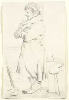 Even after he had achieved status as a full Royal Academician, Etty regularly attended life classes; fellow artist John Constable sarcastically wrote that "Etty [sets] an excellent example to the Modles [ك] for regularity".[79] His contemporaries considered this at best peculiar and at worst extremely inappropriate, complaining that for someone in his senior position to attend classes as a student was both unprofessional and unnecessary, and that it damaged the standing of the position of Academician;[79] there were complaints that he had far outlasted the official student term of 10 years.[37] Etty refused to give up attendance, offering to resign rather than give up his studies, and the Academy grudgingly allowed him to continue to attend classes.[79] He divided his time between the RA's own life classes and those at nearby St. Martin's Lane.[68]