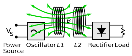 اقتران تحريضي متذبذب متوسط منخفض kHz – GHz ملفات سلكية مضبوطة ، عناصر مجمعة مذبذبة شحن الأجهزة المحمولة ( Qi) ، الزرعات الطبية الحيوية ، المركبات الكهربائية ، حافلات الطاقة ، القطارات ، MAGLEV ، RFID ، البطاقة الذكية .